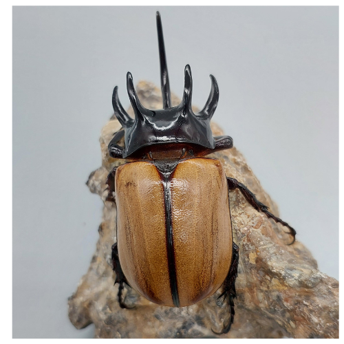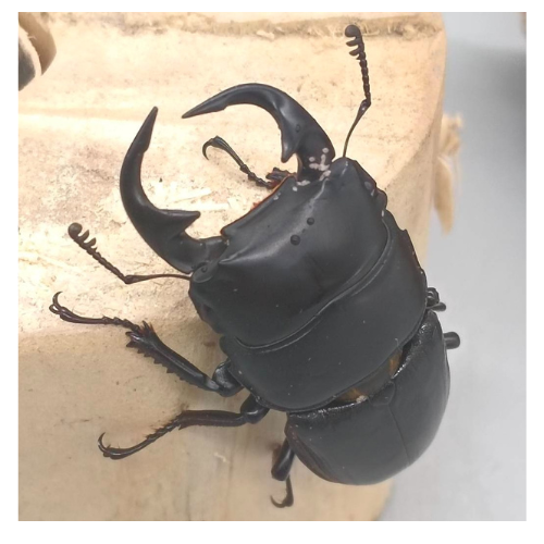 Eupatorus gracilicornis or Thailand's 5 horned beetle its wing looks like wood shiny and wow but under the colorful wings is being an adult only 3 month then they were all died maybe cost 100-600 baht